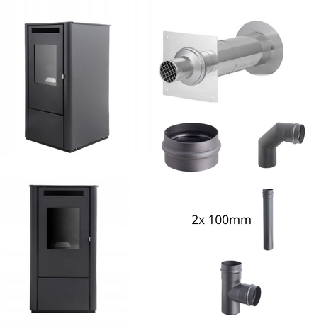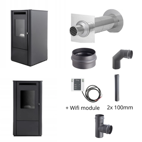 Eva Calor Giusy 14kW Pelletkachel Zwart met drie uitgangen - 120 m2