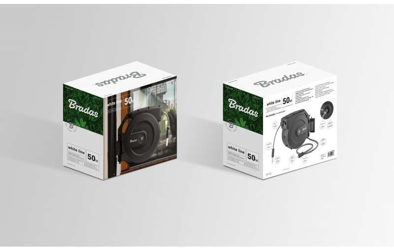 De Bradas Wandslangenbox 50 meter WHITE LINE (1/2") maakt het sproeien van je tuin veel makkelijker dan ooit tevoren. Deze automatische slangenbox met oprolsysteem zorgt ervoor dat je nooit meer handmatig je tuinslang hoeft op te rollen. De waterslang rolt vanzelf netjes terug dankzij het slimme slow-speed systeem, waardoor knikken en knopen voorkomen worden.