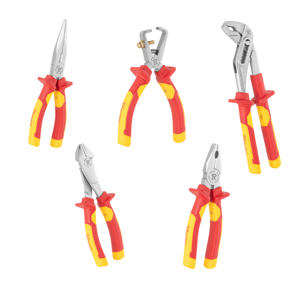 Bradas VDE Tangenset 1kV (5-delig) – Langbek 195, Zijkniptang 195, Combinatietang 185, Afstriptang 165 & Waterpomptang 250 mm